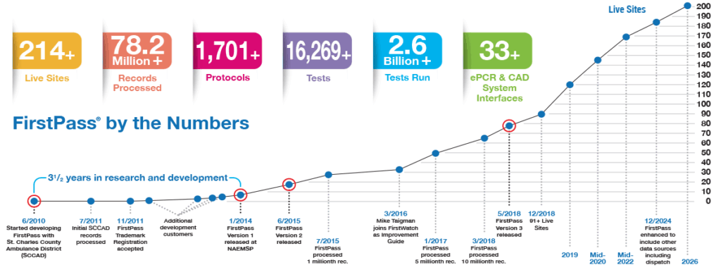 For the first time there is an automated system that alerts when a patient care report doesn’t match your agency’s protocols. Years in development from the trusted EMS innovators at FirstWatch®, the FirstPass®; quality enhancement module has now processed more than 45.3 million ePCR records, from 27+ different ePCR vendors, and has performed more than 1.4 billion tests for deviations from protocol. What used to take days or weeks can now be accomplished in minutes, allowing agencies to take immediate action to correct documentation errors or to provide positive feedback and training.